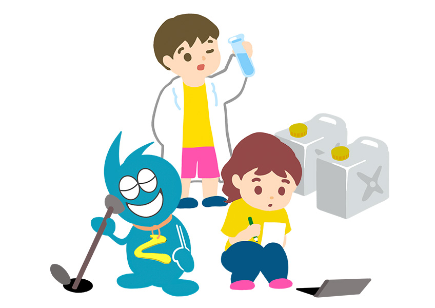 水質(すいしつ)けんさで、法りつに合ったものか調べているんだ。